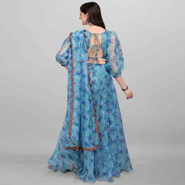 Blue Organza Flared Lehenga